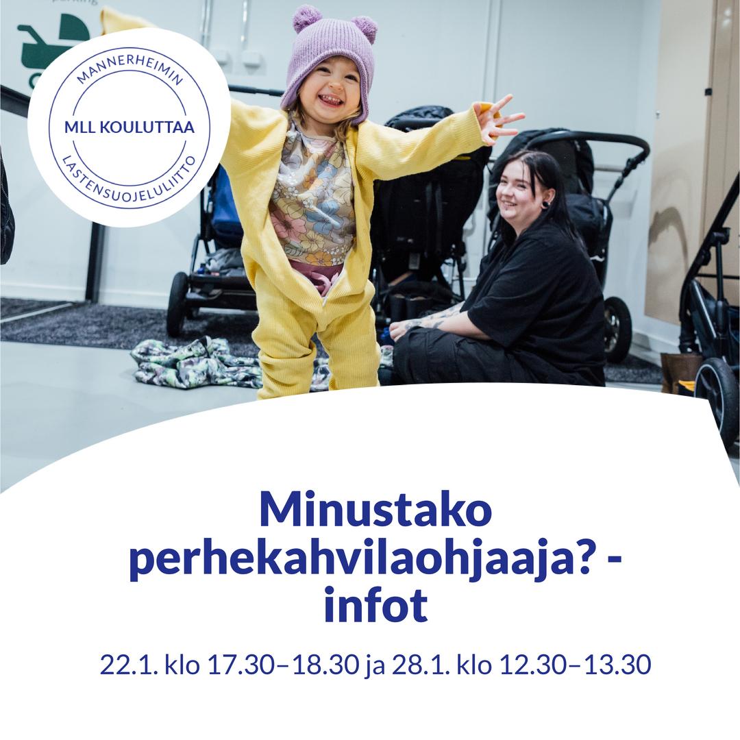 Haluatko toimia omalla alueellasi lasten ja lapsiperheiden arjen tukena? Haluaisitko tavata vanhempia tai muita samassa elämäntilanteessa olevia ja mahdollistaa lapsille ikätasoista leikkiseuraa? Lähde mukaan MLL:n perhekahvilaohjaajaksi!